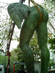 Por aquella época trabajaba en un periódico, mejor dicho, en dos a la vez, uno digital y otro de ‘papel’. Solía ir a trabajar andando, cambiando de recorrido, pero siempre haciendo el ´último tramo por la Gran Vía de Valencia. Fue allí, en eses largo paseo ajardinado, donde me encontré camino del trabajo con la preparación de una exposición de esculturas de Igor Mitoraj. En su día, el 2006, publiqué algunas de las fotos en ambos periódicos, así como en algunas webs mías, llegando incluso a hacer alguna web ‘a propósito’ con las imágenes. Ya no existen, claro…