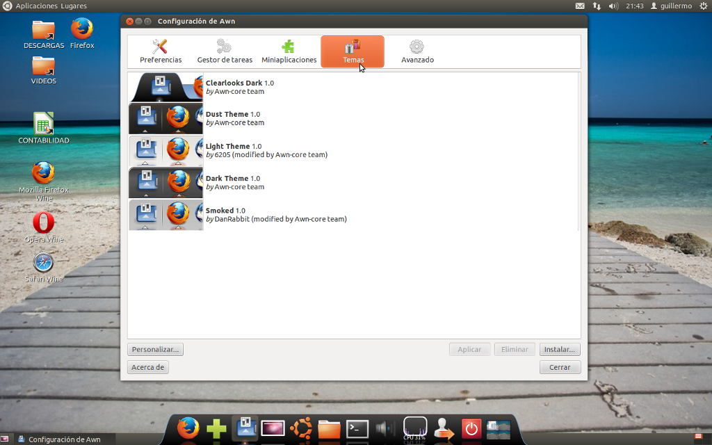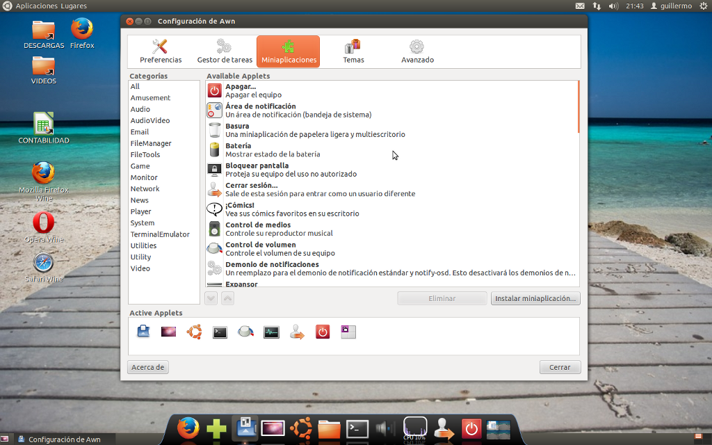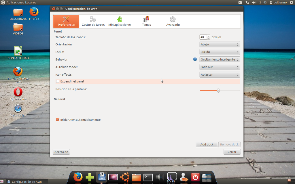Dispones de las siguientes opciones para personalizar el lanzador o navegador de ventanas Awn: