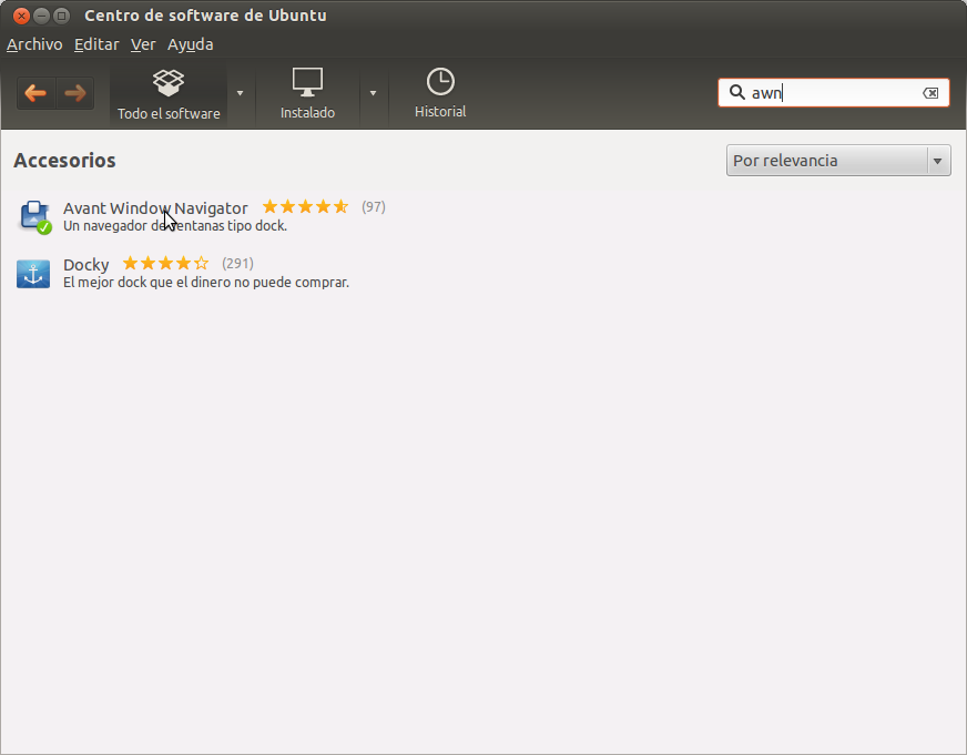Navegador de ventanas similar a un muelle de aplicaciones enteramente personalizable para GNOME. Copyright (C) 2007-2010 Awn-core team