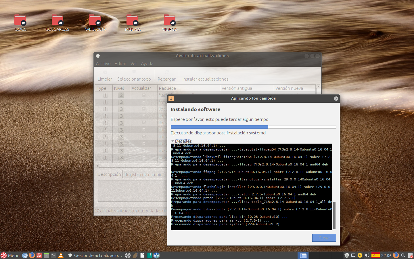 P.D. Mientras escribía estos dos párrafos, se me ha actualizado el sistema; igualito, igualito que en Windows 10, ¿verdad?… Os dejo una guía (en inglés) sobre Peppermint: User’s Guide