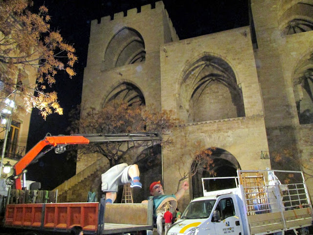Falla Torres de Serranos – Plaza de los Fueros, preparando la Plantà…