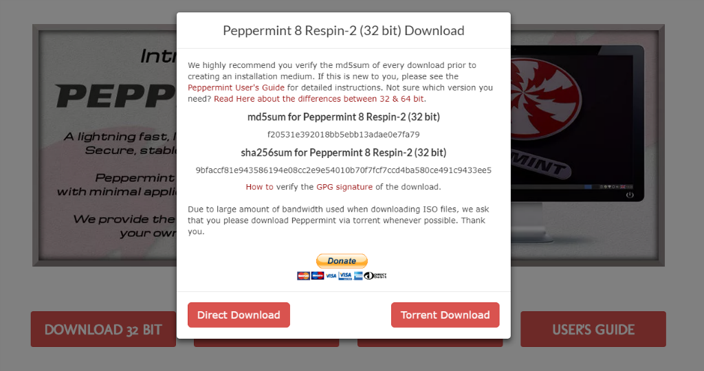 Descargue directamente la imagen ISO de Peppermint 8 Respin-2 (32 bit)