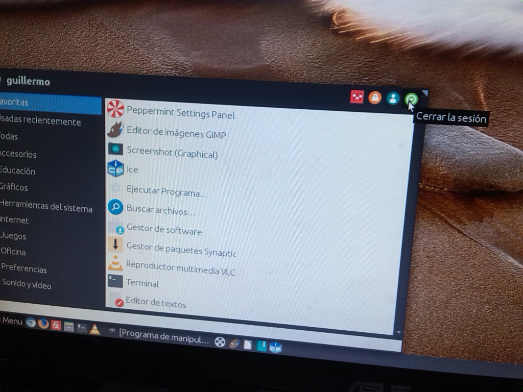 Dejo captura pantalla de cómo apagar Peppermint: