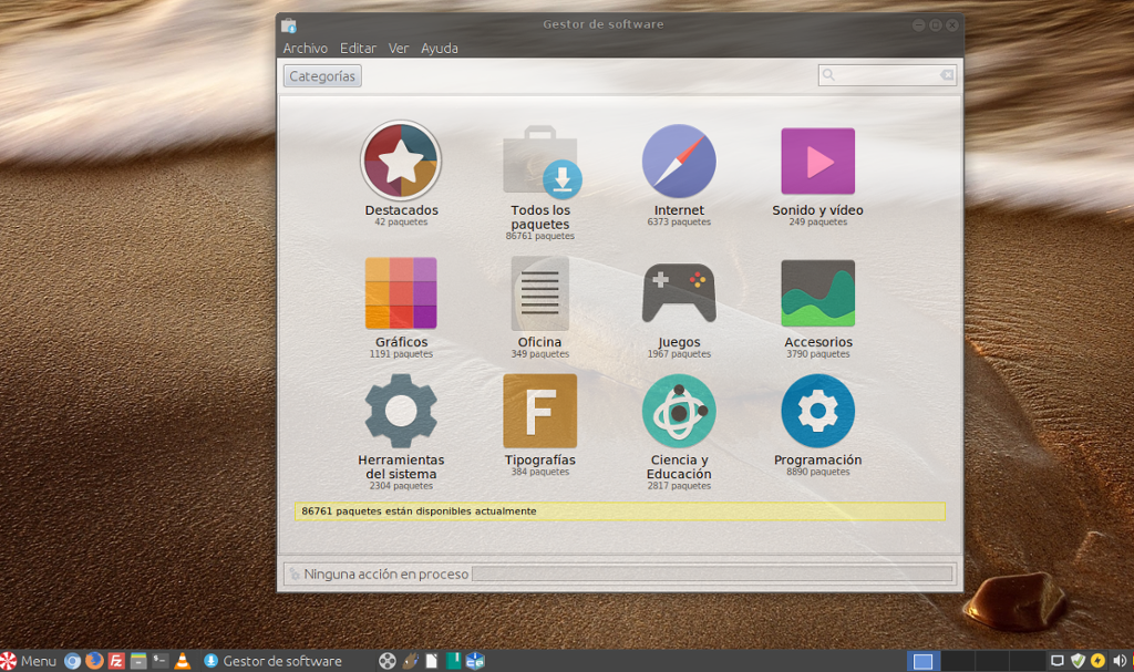 Desde esta opción buscaremos el software o programa que queramos instalar en nuestro Peppermint. Para mayor facilidad, está categorizado: Destacado, Accesorios, Internet, Oficina, Gráficos, Juegos, Programación, Ciencia y Educación, Herramientas del sistema, Sonido y vídeo, Tipografías y Todos los paquetes.