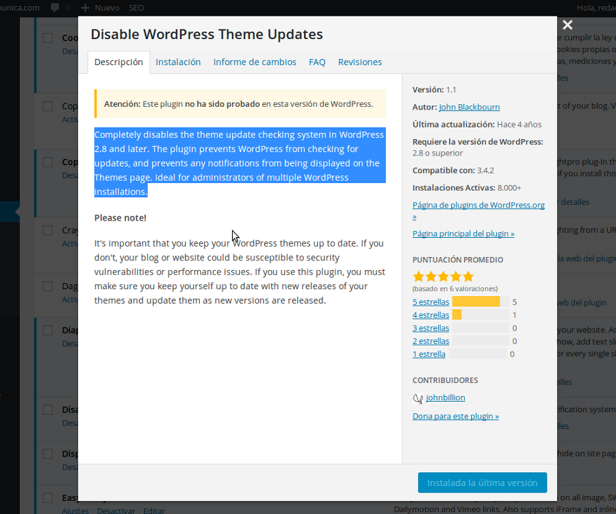 Plugin para desactivar las actualizaciones de las plantillas de WordPress
