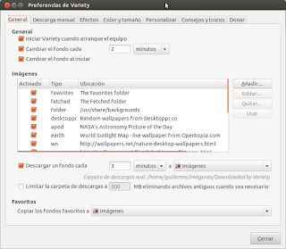 Yo lo he probado con una distro Ubuntu 12.x y me ha gustado mucho. Variety te permite eligir las fuentes de donde descargar las imágenes para que ‘decoren’ tu escritorio Linux. Además, te permite guardarlas y añadir las propias, como por ejemplo, las de la carpeta imágenes. Y si te gustan las citas, también puedes incluirlas en el escritorio, además de un gadget de hora.